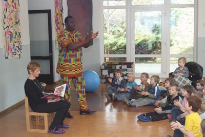 "Die Geschichte erzählt, dass man alles erreichen kann, wenn man es ganz fest will. Der Frosch verliebt sich in ein Elefantenmädchen, aber dem Elefantenvater ist der Frosch als ...
